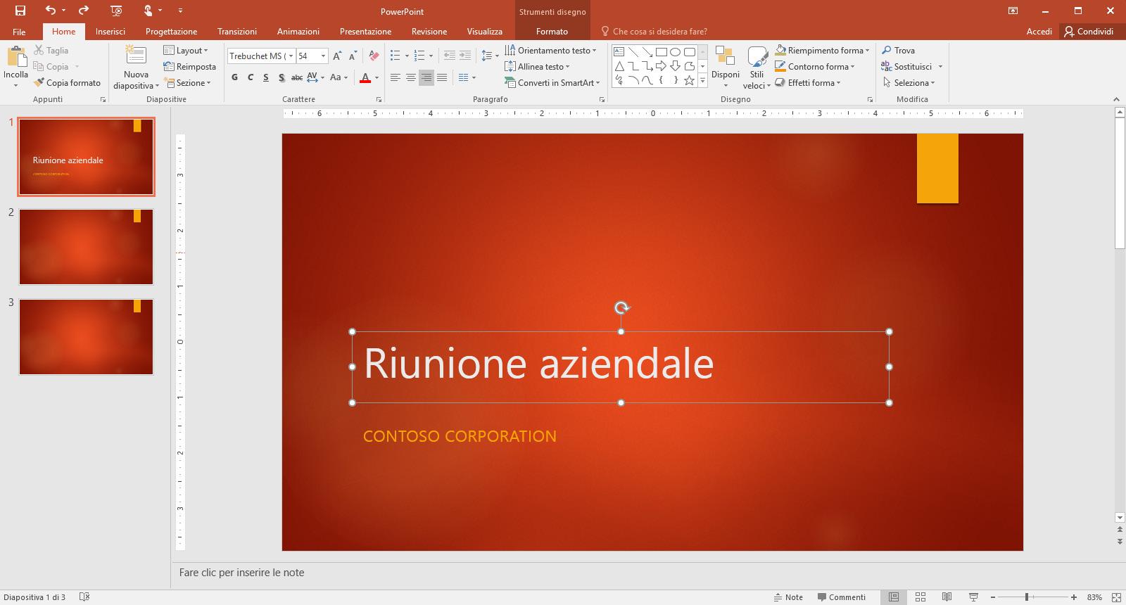 Selezionare testo, immagini o altri oggetti di una presentazione per visualizzare altre schede.
