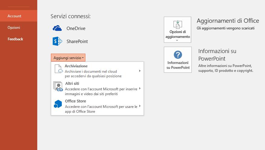 Si deve lavorare fuori sede e con diversi dispositivi? Fare clic su File > Account per accedere e lavorare ai file usati di recente ovunque ci si trovi, in qualsiasi dispositivo, grazie alla piena integrazione tra Office, OneDrive, OneDrive for Business e SharePoint.
