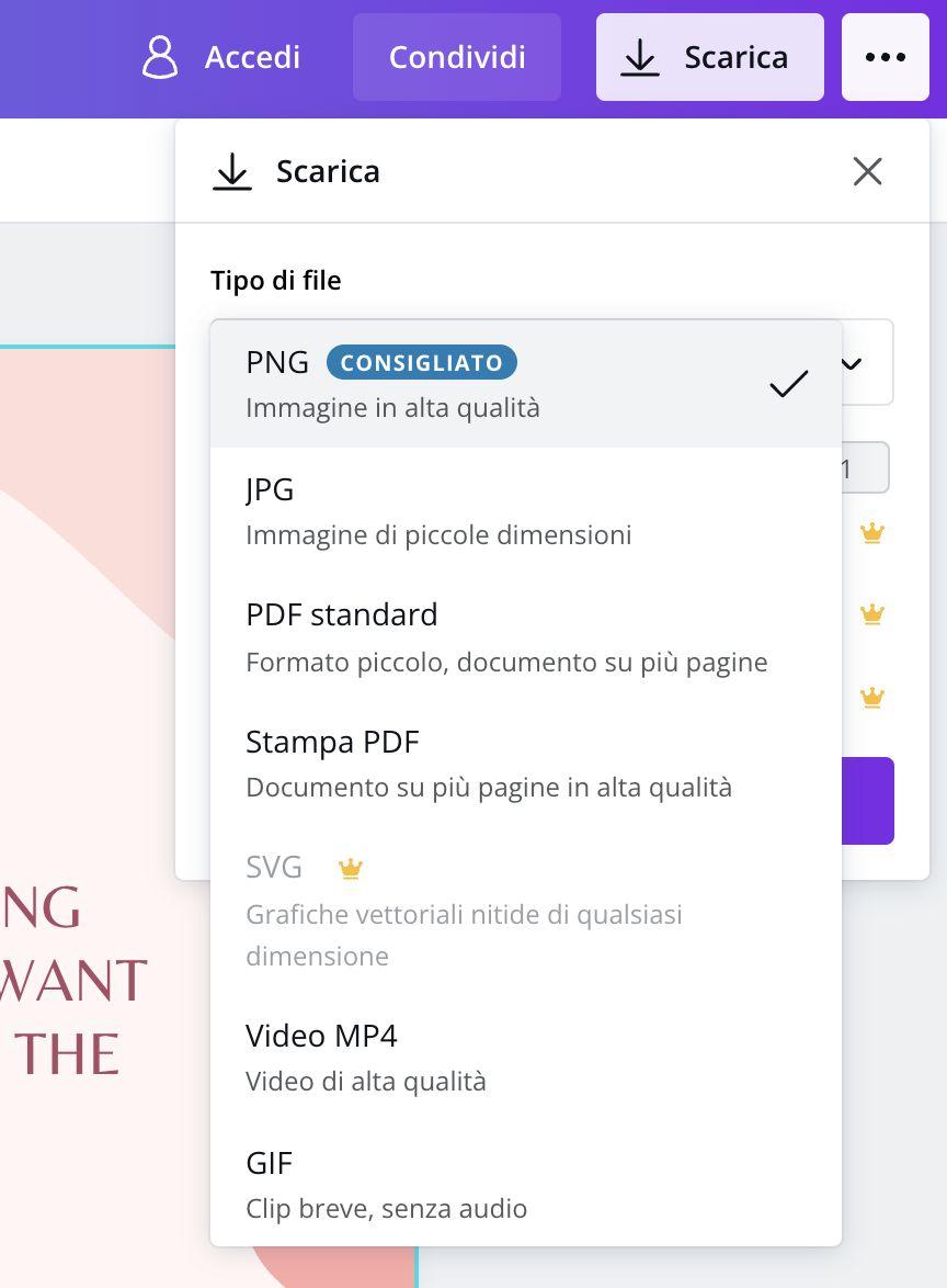 ATTENZIONE Ricordatevicheseilvostro contenutononèstatico,quindièanimatoo contienedeglielementianimati,dovrete selezionareilformato“VideoMP4”o“GIF”, altrimentisaràscaricatocomeimmaginestatica.