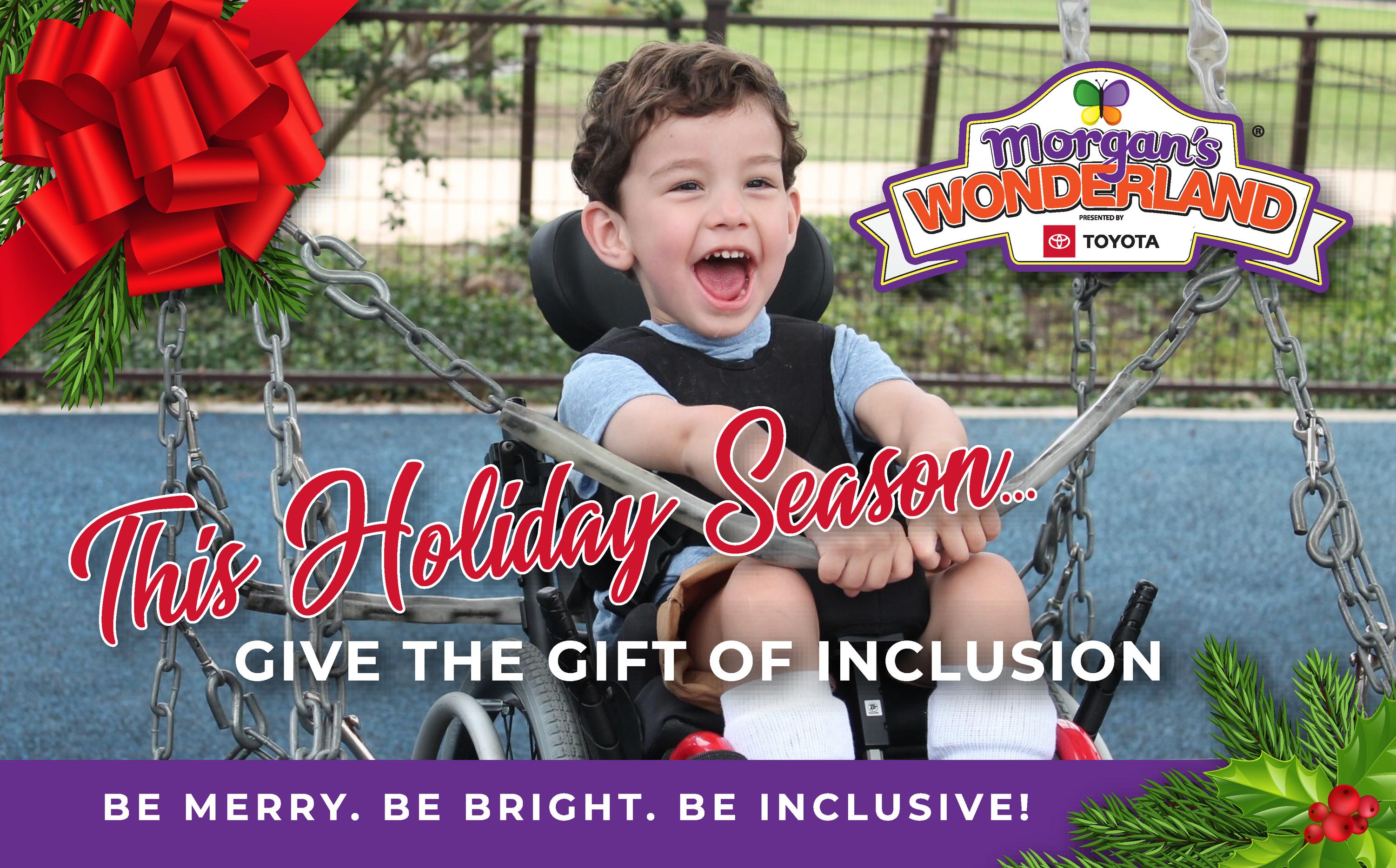 FREE Printable Postcards! Instructions: Printpages17-18and19-20front andback Cutalongthedottedlines Writeyourrecipient'saddressin theblankspaceunder"Visit InclusionStartsHere.com/Donate" Stickastampintheblankspace inthetoprightcorner Send! Thank you for supporting our mission! GivetheGiftofInclusiontoourCommunitywithSpecialNeeds&Disabilities. This Holiday Season, Give the Gift of Inclusion! BE MERRY. BE BRIGHT. BE INCLUSIVE! $25ParticipationinoneInclusiveSportsClinicatMorgan's WonderlandSports $40Coveradmissioncostforonefriendwithspecialneedsat Morgan'sWonderland $300OnecamperexperienceatMorgan'sWonderlandCamp $1000SpecializedNavigationforonespecialneedsindividualat TheMAC Every Donation Matters! Click HERE To Donate Online Today! Don'twanttodonateonline? Mailinyourdonationtoourofficeaddress: 5210ThousandOaksDr.,Ste1318SanAntonio,TX78233 16
