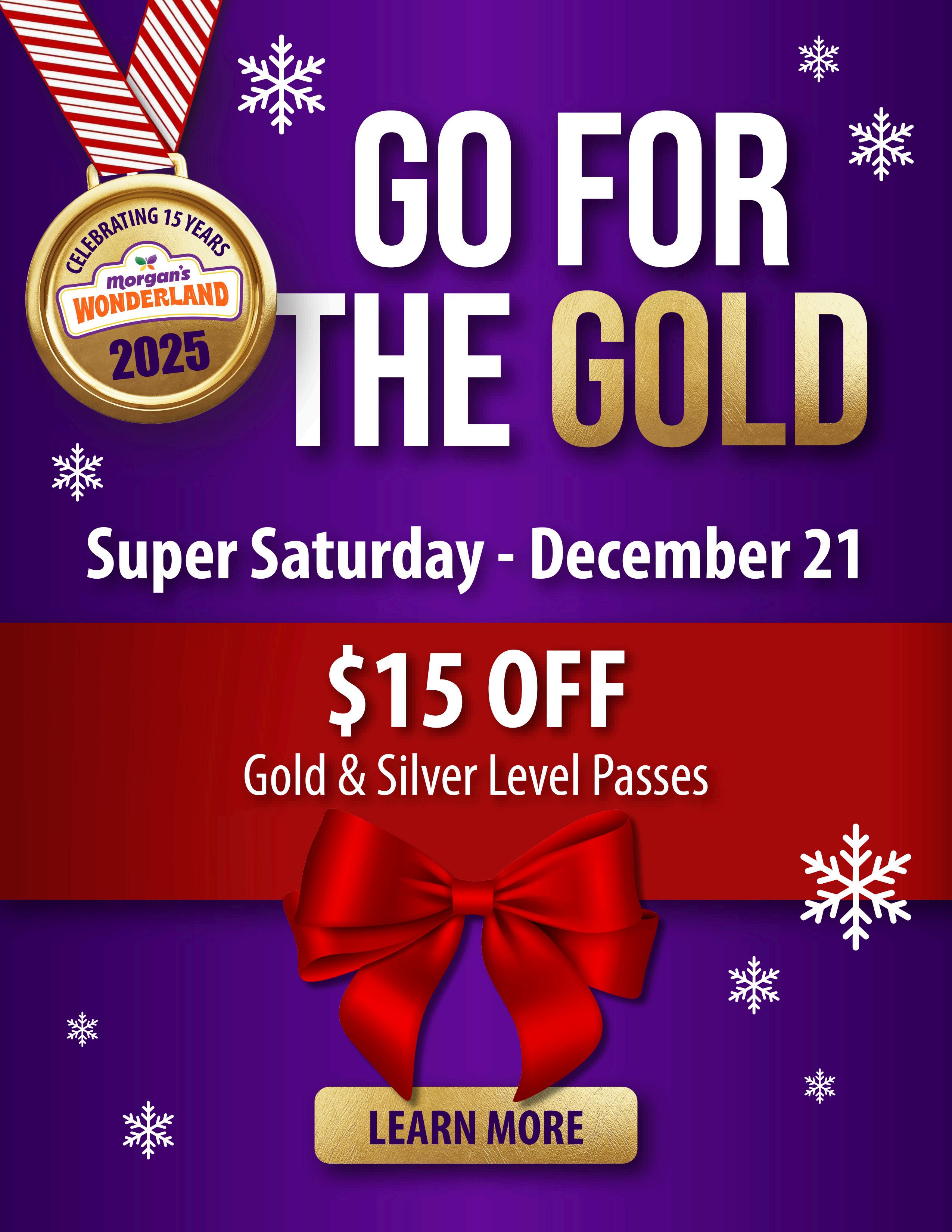 FromNov.25throughJan.5,holdersof2024Morgan’sWonderlandseason passeswillreceiveFREEadmissiontoSeaWorld’sChristmasCelebrationto enjoyanimals,presentations,shows,RudolphtheRedNoseReindeer,and millionsoftwinklinglightsatthelargestChristmaslightdisplayinTexas!
