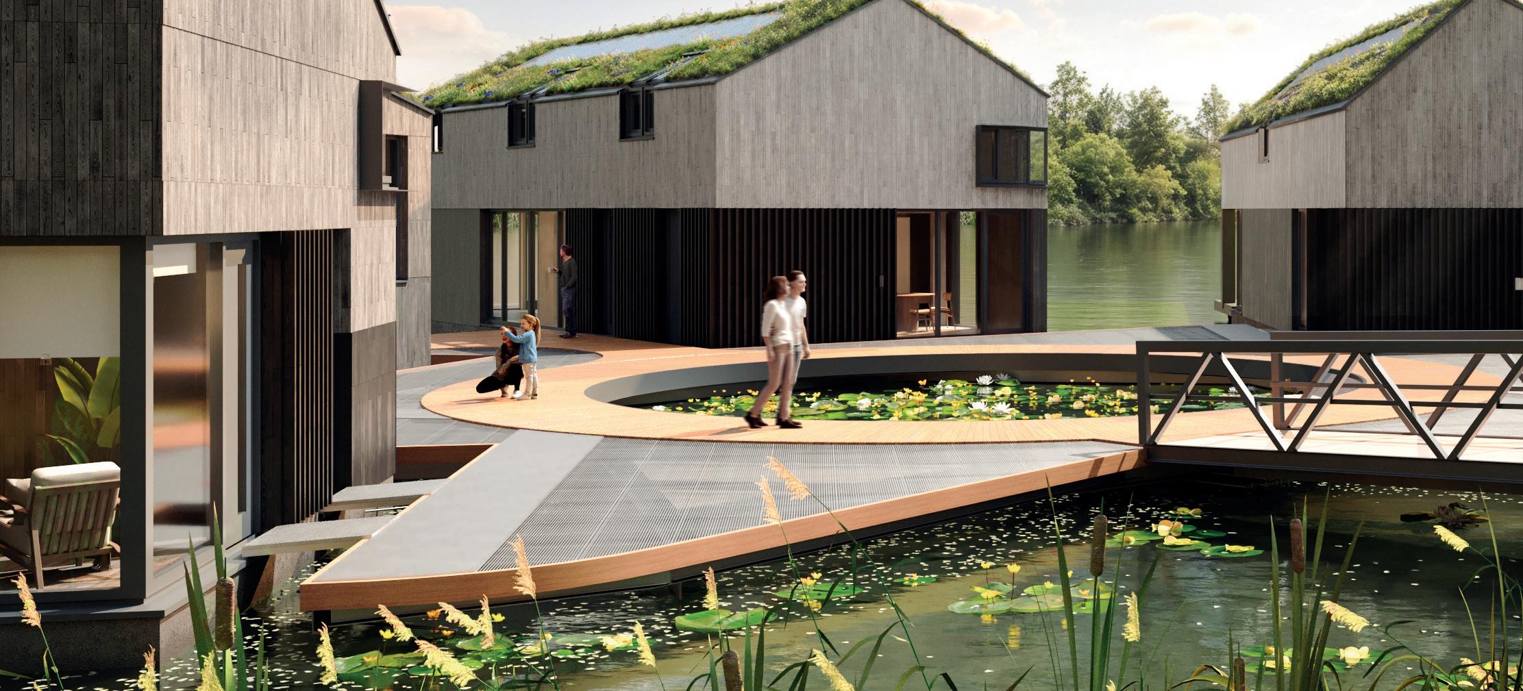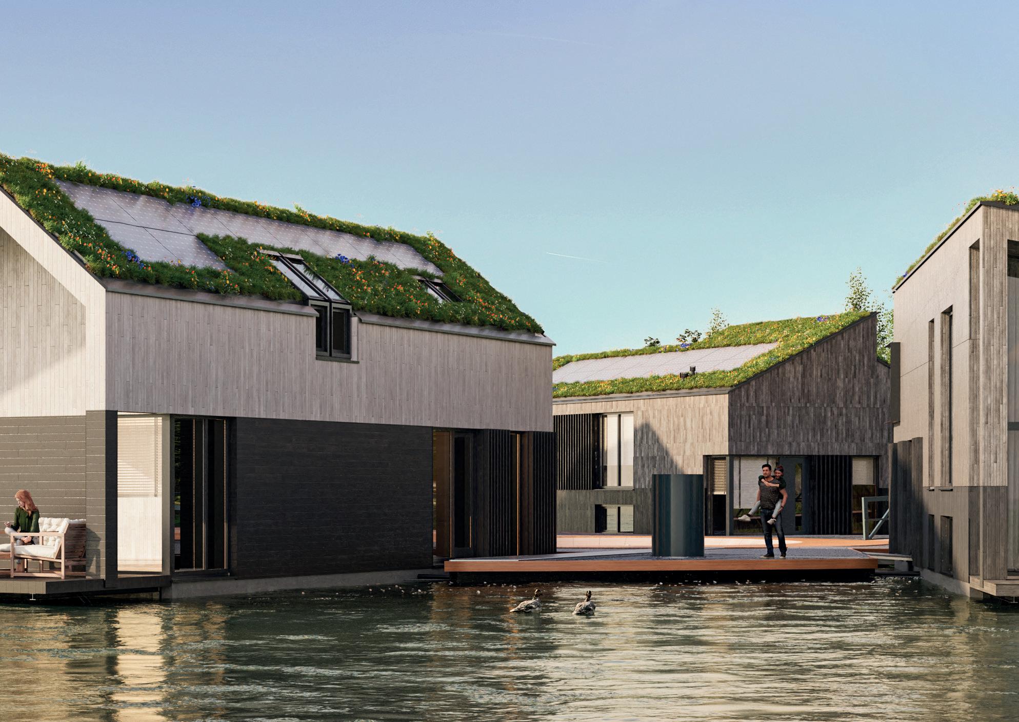 Kom los van de stad Binnen is het licht en stil. Geen verkeer, geen drukte. Alleen het zachte geluid van het riet in de wind of het klotsen tegen de gevel. De woningen zijn stevig verankerd, maar voelen licht en vrij. Een plek die loskomt van de stad, zonder afstand te nemen van alles wat belangrijk is.