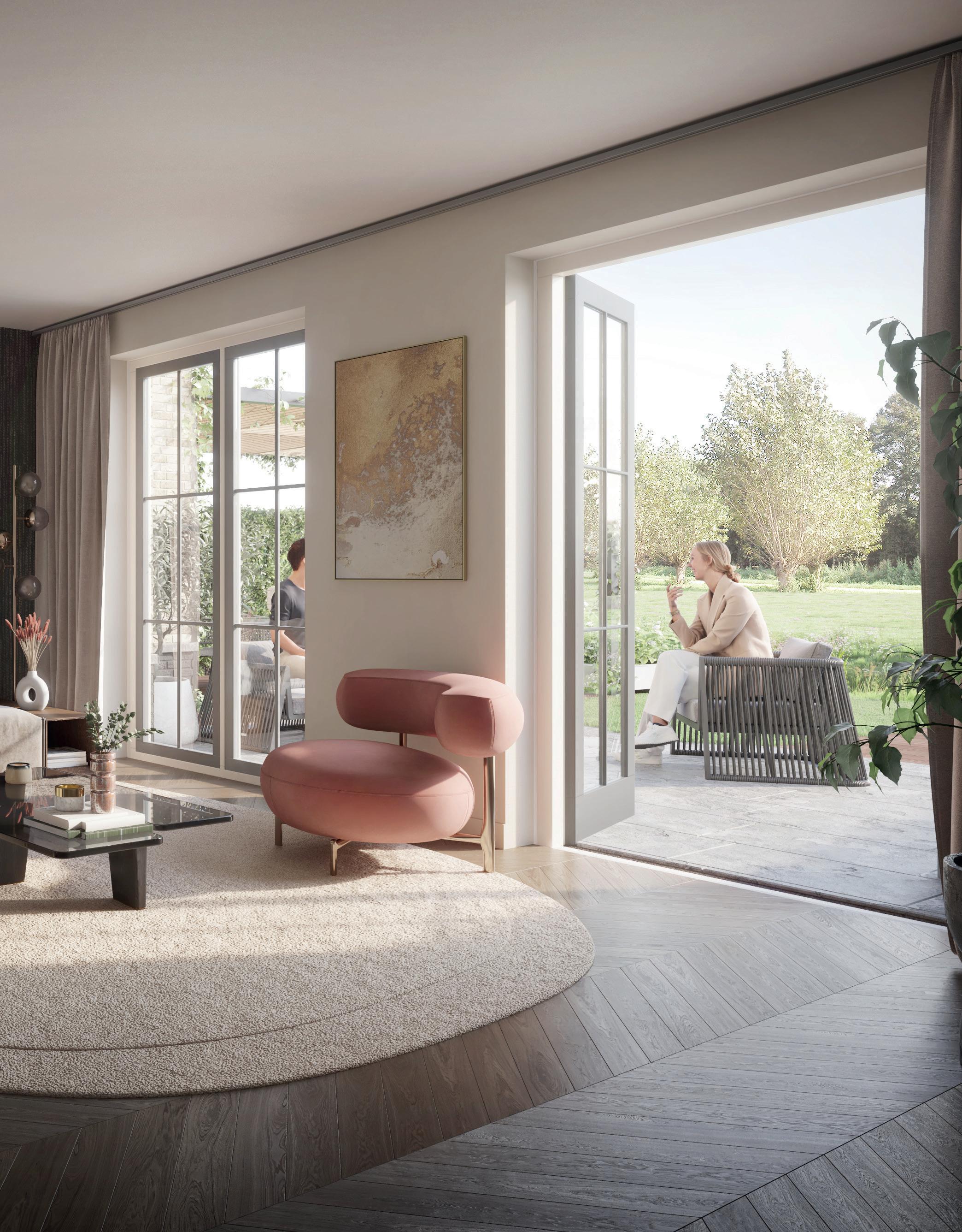 ‘Kijk je naar de plassengebieden in Nederland, dan zie je dat de woningbouw daar goed aansluit bij de sfeer en identiteit van de plek. Een waterrijke, landelijke omgeving vraagt om een andere architectuur dan een binnenstedelijke ontwikkeling. Wij kozen voor woningen met licht metselwerk in combinatie met een houtlook. Daarbij schonken we veel aandacht aan verfijning en detaillering met een mooie