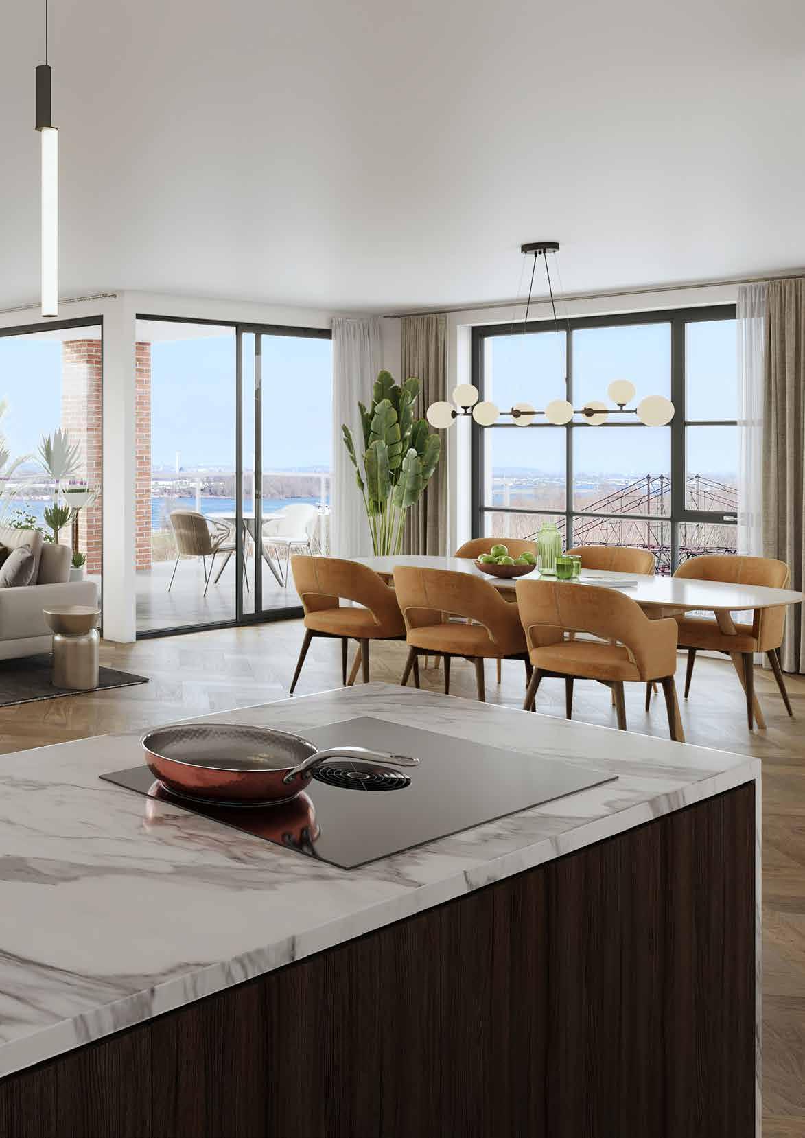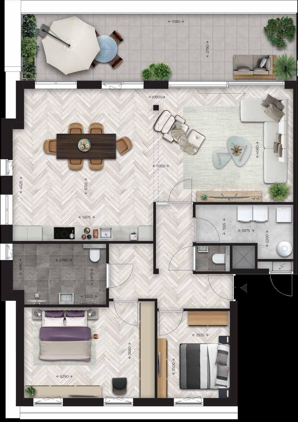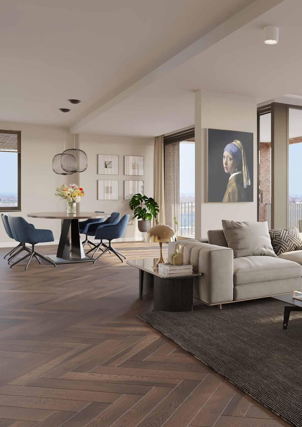 LET OP: Dit sfeerbeeld geeft een indicatie van de mogelijkheden. De binnenafwerking en inrichtingselementen behoren niet tot de standaard inrichting van het appartement.