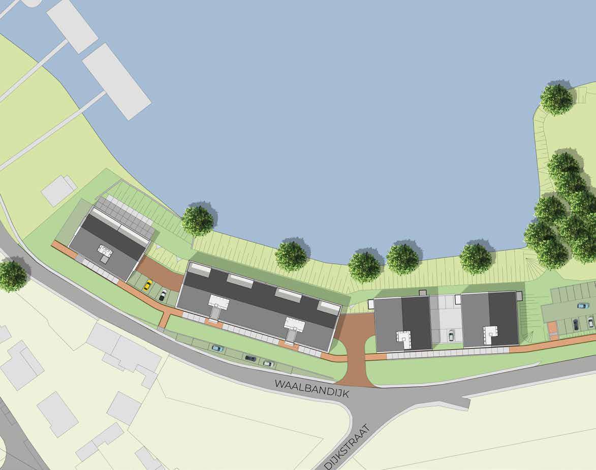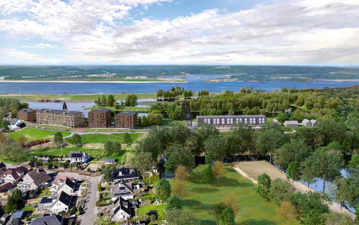 Stoere woonblokken in een ruig rivierenlandschap; dát is wat je mag verwachten van Kraanbaan. Op deze unieke locatie aan de rivier wordt een dynamisch en eigentijds woonmilieu gecreëerd gevuld met rivierwoningen, watervilla’s, appartementen en horeca. Aangenaam ingepast in het landschap, met een knipoog naar vroeger, met behoud van de Kraanbaan en de Klef, waarbij de verbintenis van het dorp met het water wordt hersteld.