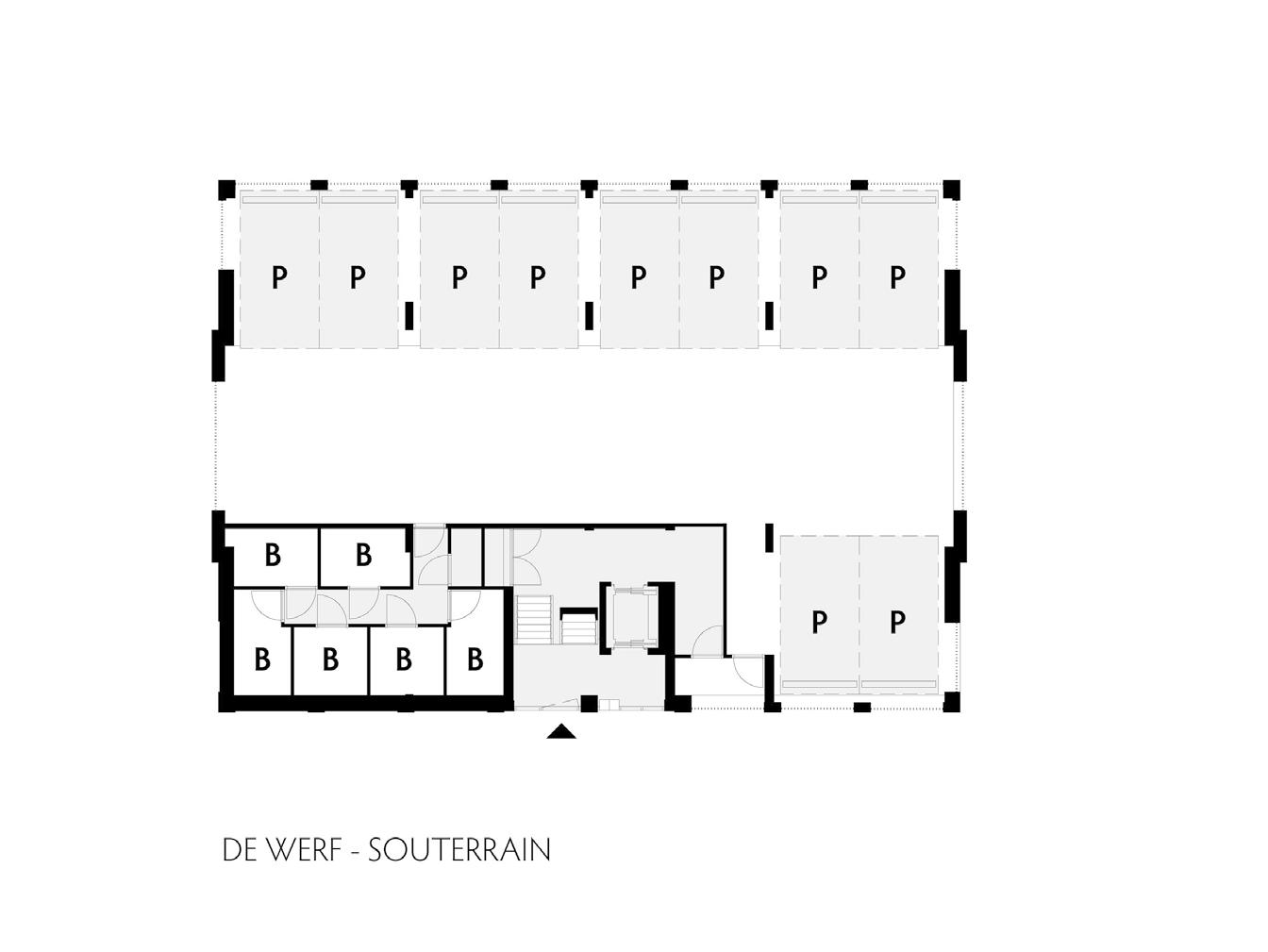 Parkeerplaatsen en bergingen in het half-verdiepte souterrain