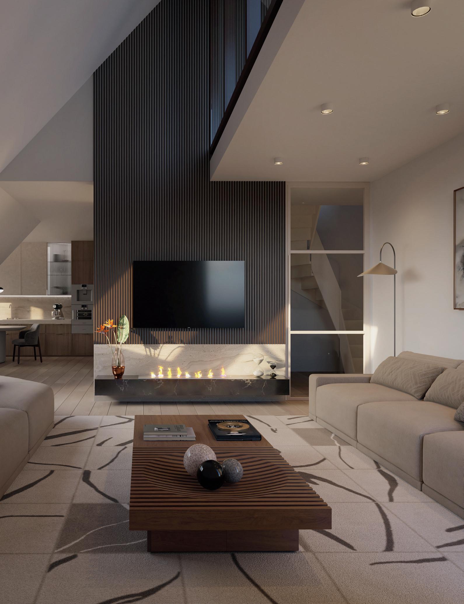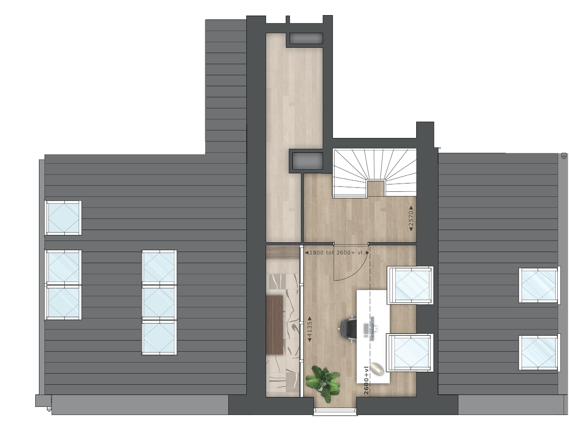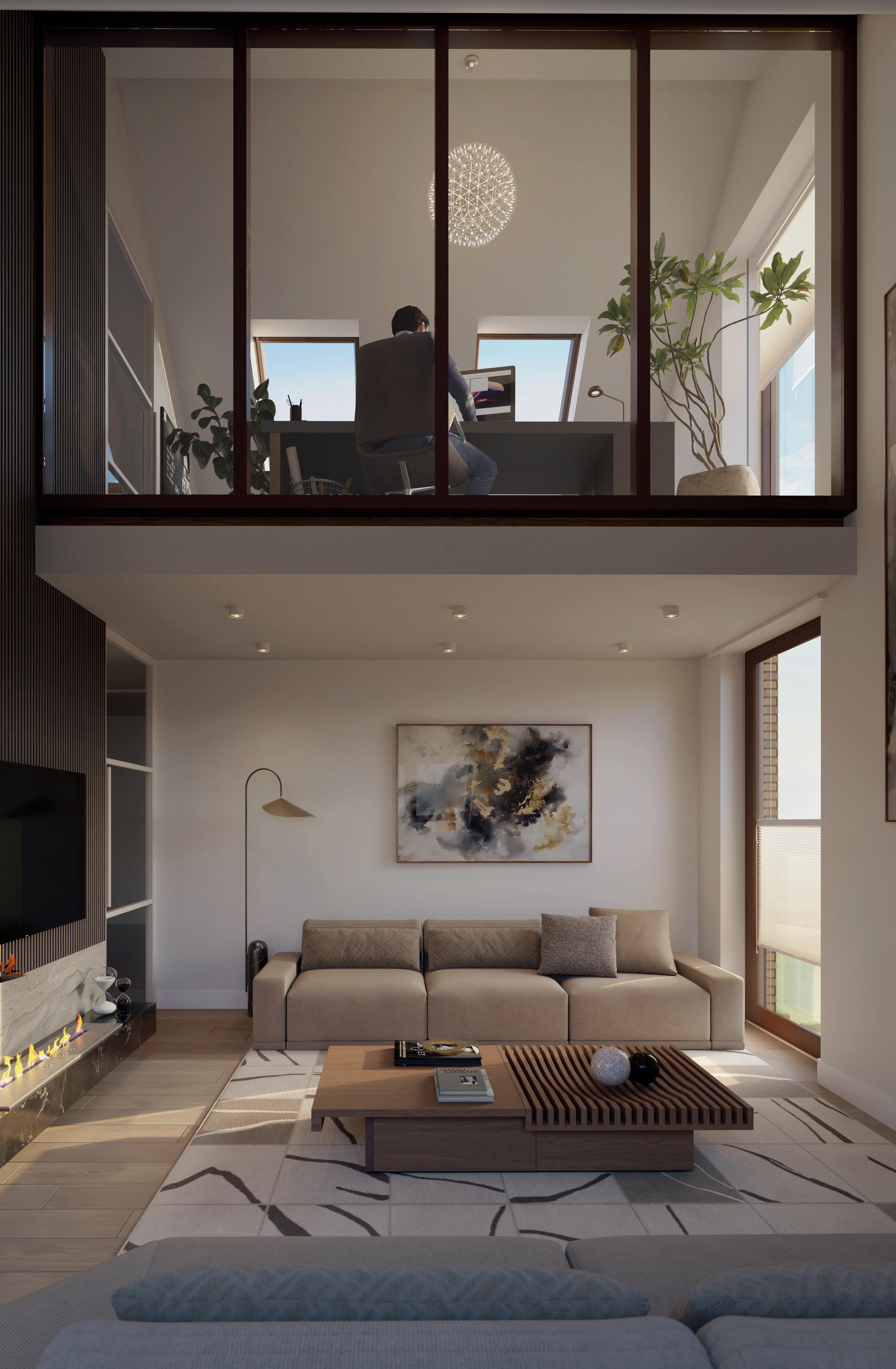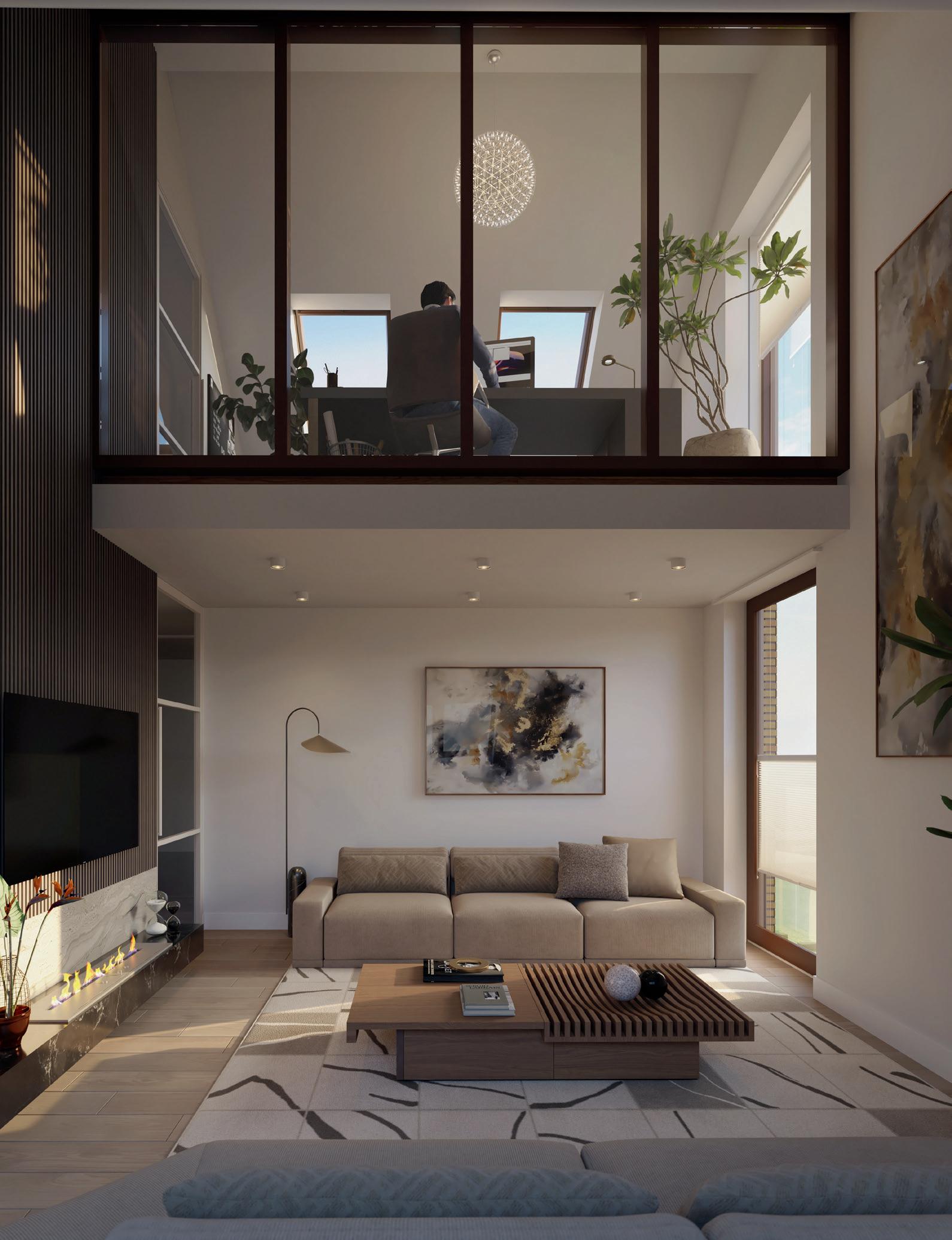 De architect noemt de twee appartementen van dit type ‘Loftwoningen met vide’. Ze bevinden zich op de zesde verdieping van Waterroos en hebben een extra vide-kamer in de kap van het gebouw op de zevende verdieping. Licht en ruimte typeren deze fraaie penthouses, die een zonnig dakterras hebben op het zuidwesten. Hier woon je pas echt op niveau met een uitzicht om van te watertanden.