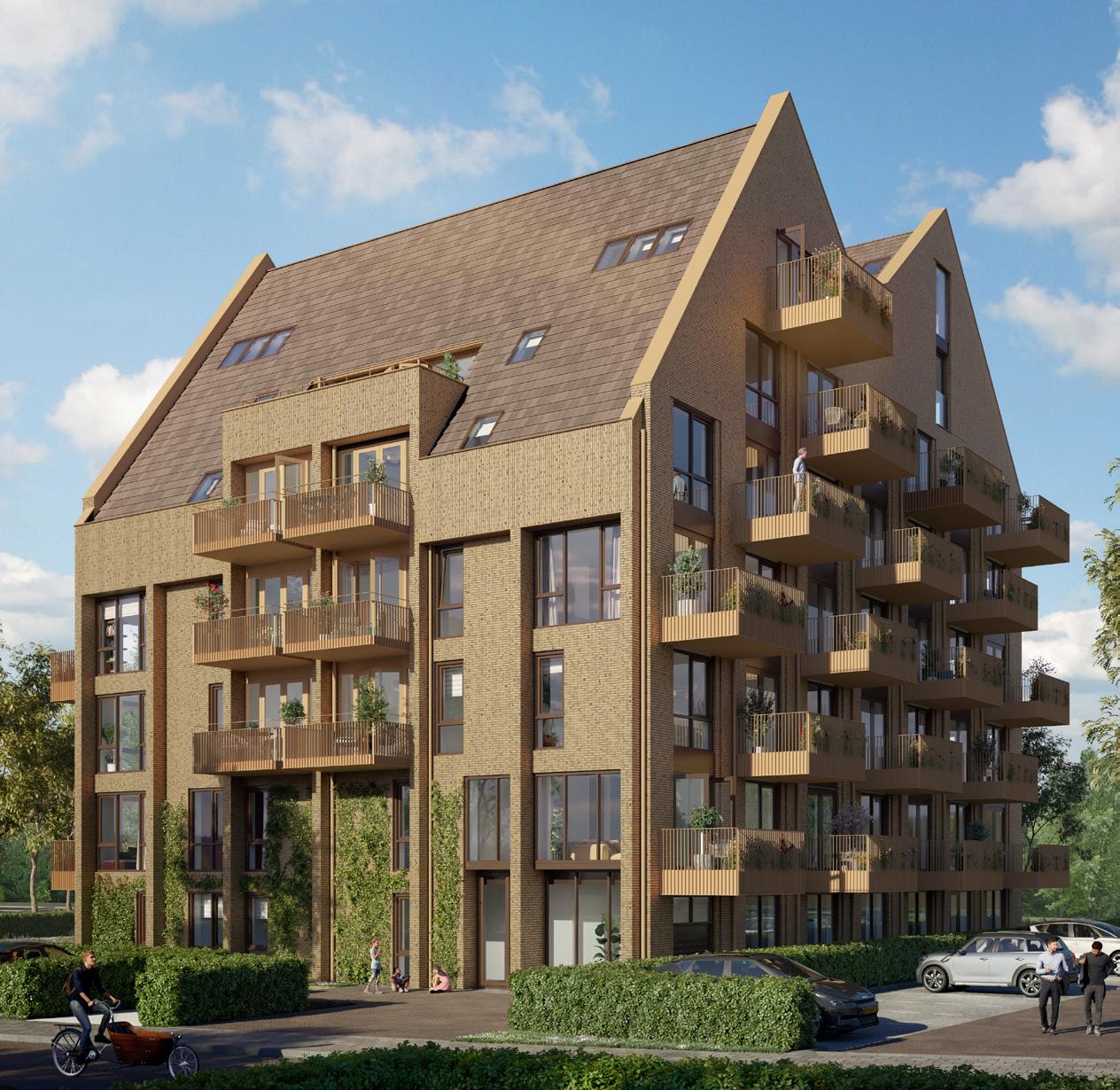 Loftwoningen met vide “Als je vanuit Rozenbuurt richting Waterroos loopt zie je direct de verwantschap met de rijwoningen en tweekappers in het straatje dat uitkomt bij het gebouw. We passen gevelstenen toe in dezelfde gele tinten en daardoor hoort het gebouw ook echt bij de tegenoverliggende straat en bij Rozenbuurt. Je ziet een huis, maar het zijn 34 appartementen die allemaal wel iets bijzonders hebben. De woon- oppervlakken variëren van 64 – 113 m2 en je hebt de keuze uit driekamer- en vierkamerappartementen. Elk appartement heeft minimaal één balkon en op de begane grond een berging. De penthouses in de kap zijn echte loftwoningen met een extra verdieping, een vide, onverwachte uitzichten en indelingen. Eén appartement heeft ook nog een extra zonnig dakterras, dat zich tussen de twee kappen bevindt. Een heerlijke plek met een fenomenaal uitzicht over de omgeving, Zwaag en zelfs Hoorn.”