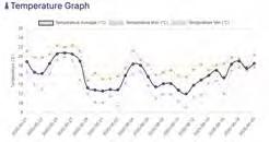 • Exibição dos dados gravados como um diagrama claro e ajustável em intervalos de tempo fixos - dia, semana ou mês;