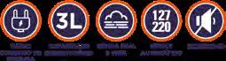 Tamanho ideal de partículas para um tratamento eficaz; Máscara adulta e infantil inclusas; Copo de medição com tampa; Design moderno, compacto e de fácil transporte; Bivolt 127/220V (troca manual).
