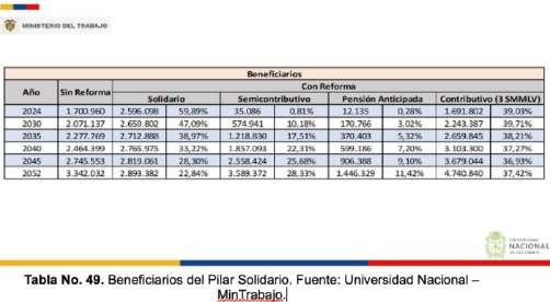 se recibe en el Pilar Semicontributivo del IPC + 3 puntos porcentuales al IPC + 4%. La voluntariedad del Pilar Semicontributivo, que las comisiones de administración de las administradoras de los fondos privados subieran a un máximo de 1.0 de los 16 puntos de cotización y que las funciones de cobro administrativo de las administradoras de fondos privados pasaran a ser asumidas por la UGPP. Esta ponencia fue negada por la plenaria del Senado de la República el 15 de abril de 2024 con 59 votos en contra y 18 votos a favor.