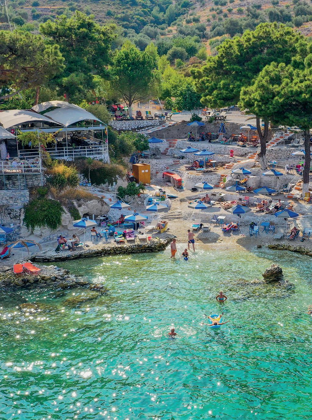 Located just 3 kilometres outside Pythagoreio, this popular beach bar-restaurant in Samos is perfect for the whole family, any time of the day. Whether you prefer coffee, drinks, or food, you can savour them on sunbeds overlooking the crystal clear waters of Glicorisa, a Blue Flag awarded natural bay. Children can enjoy the playground and the swimming pool, supervised by their parents.