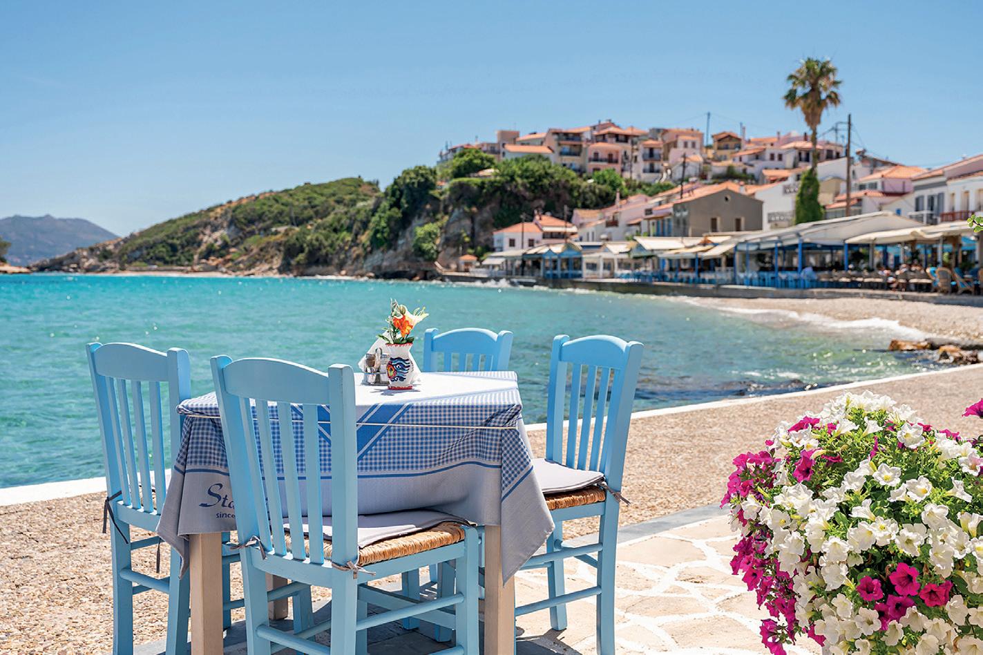 On the sunny shores of Kokkari, StathisSeasideRestaurant has been offering a captivating dining experience since 1976, where the blue of the Aegean meets the local cuisine of Samos.