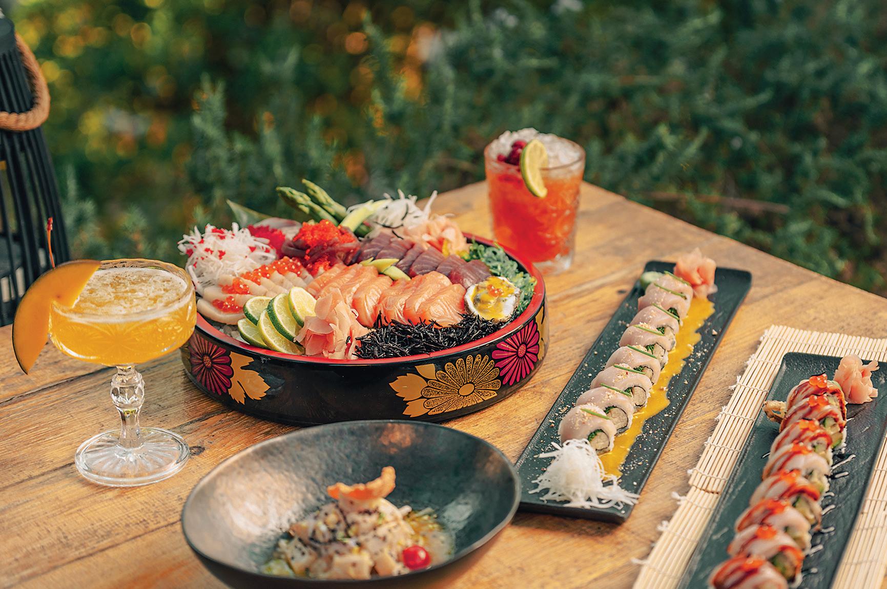 Indulge in exotic flavours from the East and exquisite sushi that transports you to magical Japan. The rich menu offers classic Asian fusion dishes in a serene Japanese-inspired setting, complemented by soft lighting and soothing music. The lovely terrace, overlooking a lush garden, is perfect for dining or enjoying one of the delightful cocktails on offer.