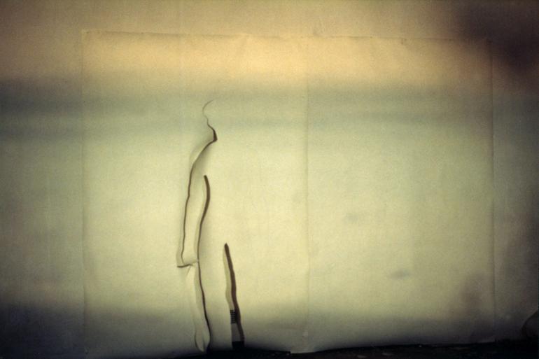 A végtelenített Super 8 film kartonból kivágott emberalakra volt vetítve. A víz horizontja úgy hullámzott az alak fejénél, hogy az hol a víz fölé került, hol pedig a víz alá ,,merült’’.