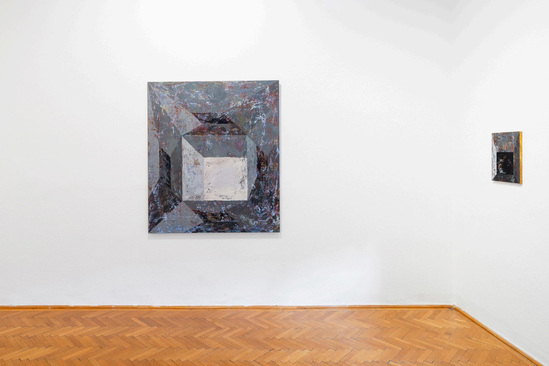 Ebből a megismerő folyamatból materializálódtak, illetve ebbe nyitnak teret, sőt, voltaképpen ekként a térként jelennek meg a Hieron című kiállításon most bemutatott festmények és szobrok. A Hieron a négyszögletű tér, a mindent magában foglaló természetű Tudat szimbóluma. Eredeti jelentése a görög templomnak a négyszöghasáb tömegű belső tere, amely befogadja az istenszobrot. Itt nyílik meg a lét misztériumának valósága – e tér maga a lét misztériumának térfeletti valóságával azonosul.