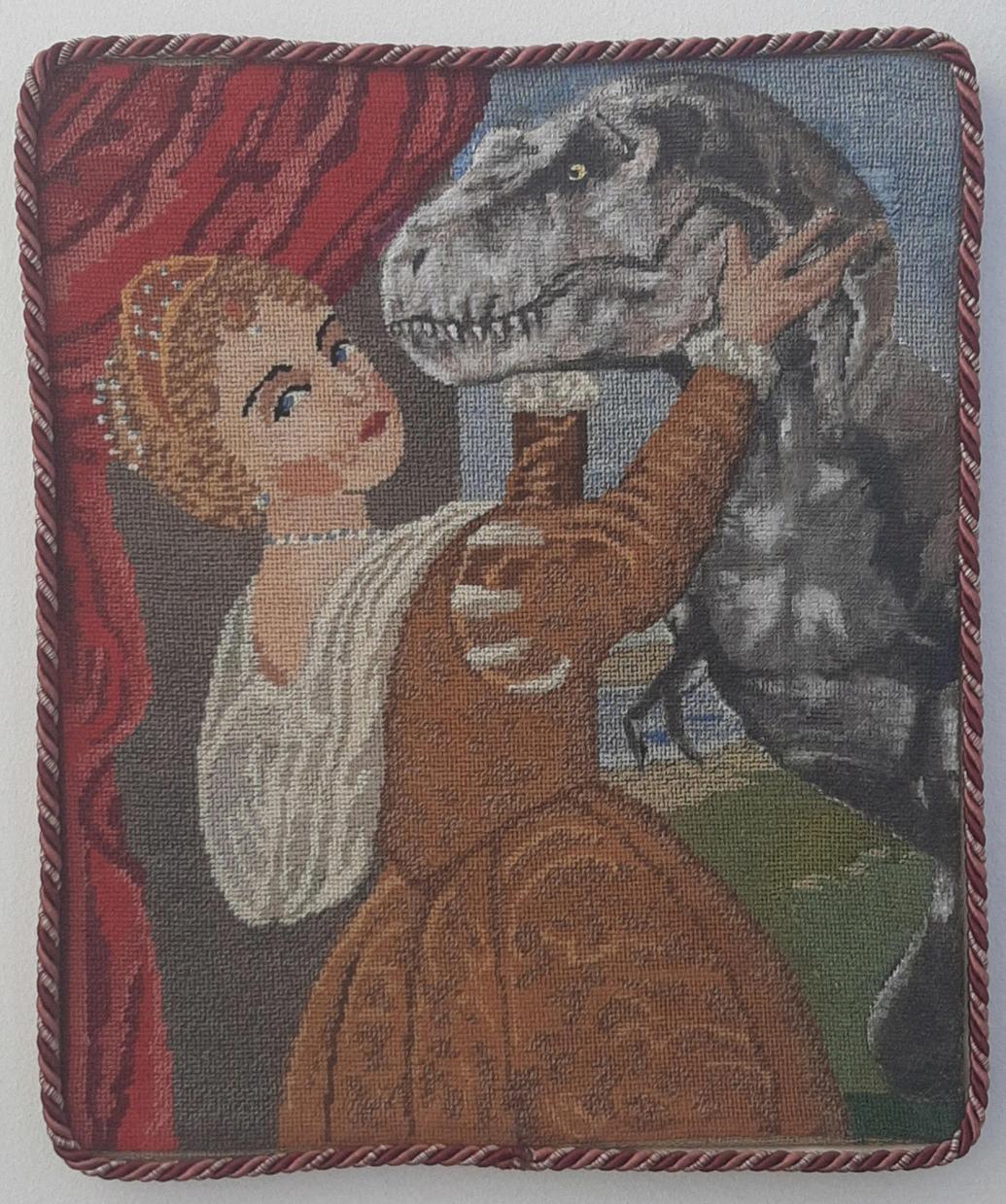 Készen vett, talált gobelinek átfestésével is foglalkozik, mely technika a nevéhez köthető invenció.