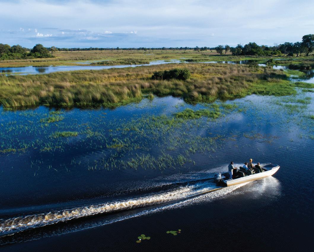 Clockwise from above: A dress at the Frida Kahlo show at Palais Galliera, Paris (page 19); Jaipur’s Villa Palladio (page 11); a Botswana boat ride (page 14); stuffed pasta at Pulejo, Rome (page 24). On the cover: Jao Camp, Botswana. Back cover: Namibia sunset.