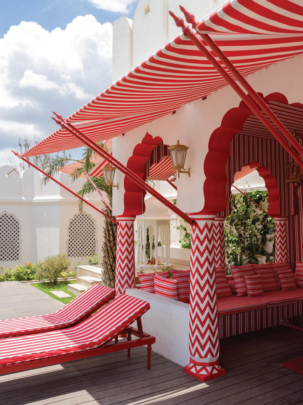 Barbara Miolini’s newest project, Villa Palladio, completes the Swissborn designer’s trifecta of stylish Italian-inspired spots in Jaipur, joining Bar Palladio and Caffé Palladio. Inside, the chic nine-room boutique hotel is drenched in rich reds, a bold and striking contrast to the crisp white exteriors. Located 40 minutes outside the Pink City, the intimate private estate has a pool, spa and rose-filled gardens, providing a tranquil and inviting retreat from the swirling pulse of the Pink City. Contact Indagare or your Trip Designer to help craft an itinerary to India. Elise Bronzo