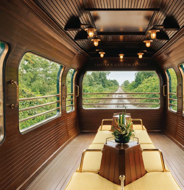 In February, the Eastern & Orien tal Express returned to the rails of Southeast Asia for the first time in four years, with eight sleeping carriages, two restaurants, a piano bar and an open-air observation car. Two new journeys, both departing from Singapore, will bring travelers through Malaysia, introducing a locally inspired dining program by celebrated chef André Chiang (the beverage concept emphasizes botani cal-themed and vintage cocktails, as well as artisanal Malaysian coffees). In May, a limited-edi tion Tiger Express itinerary will immerse guests in the world of the endangered Malayan tigers, within Malaysia’s Taman Negara National Park—and offer the opportunity to contribute to anti-poaching initiatives and conservation efforts to protect this precious rainforest.