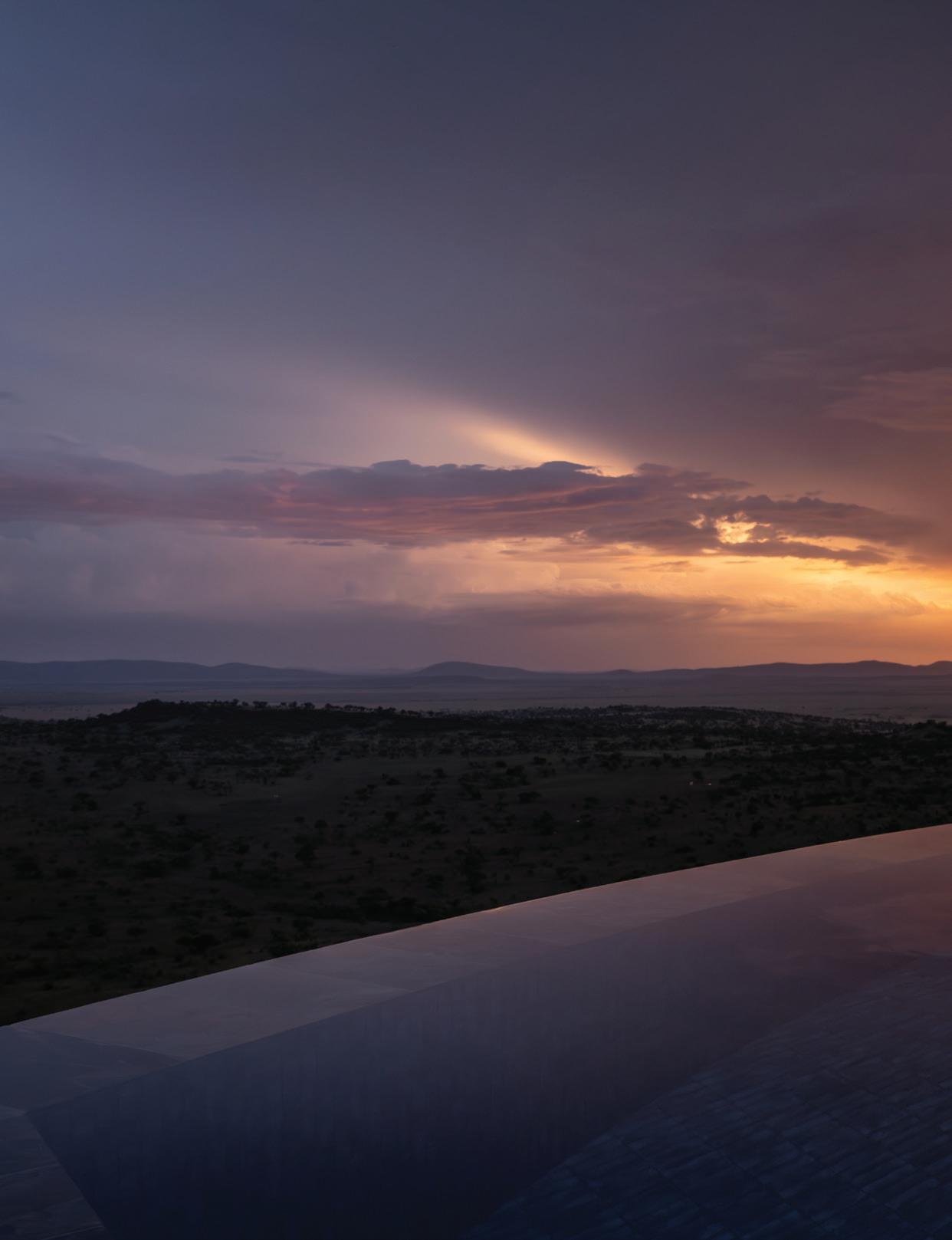 The main lodge at Segera. Opposite: Sundowners at Ol Donyo.