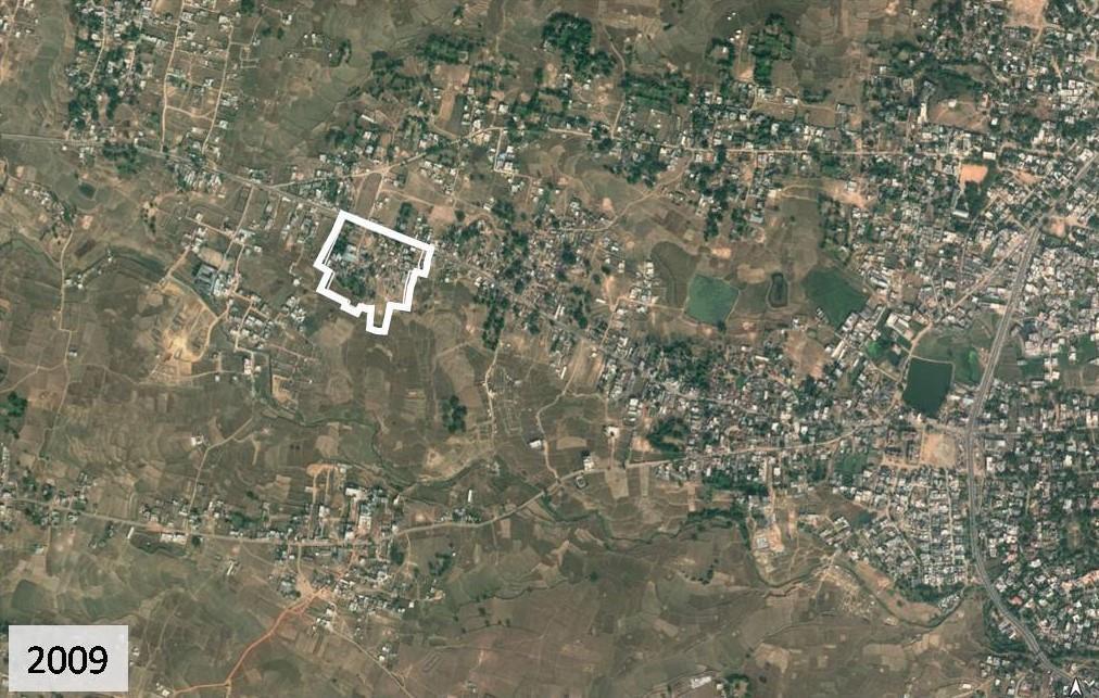 As is visible in the pictures, the region has undergone exponential urban growth especially in the last decade. Agricultural lands have been converted to residential, commercial and institutional. The emergence of dense built fabric in the region has affected natural drainage patterns that feed into the tributary of Subarnarekha. The settlement fabric stands in sharp contrast to the high-rise, low density fabric of the surrounding areas.