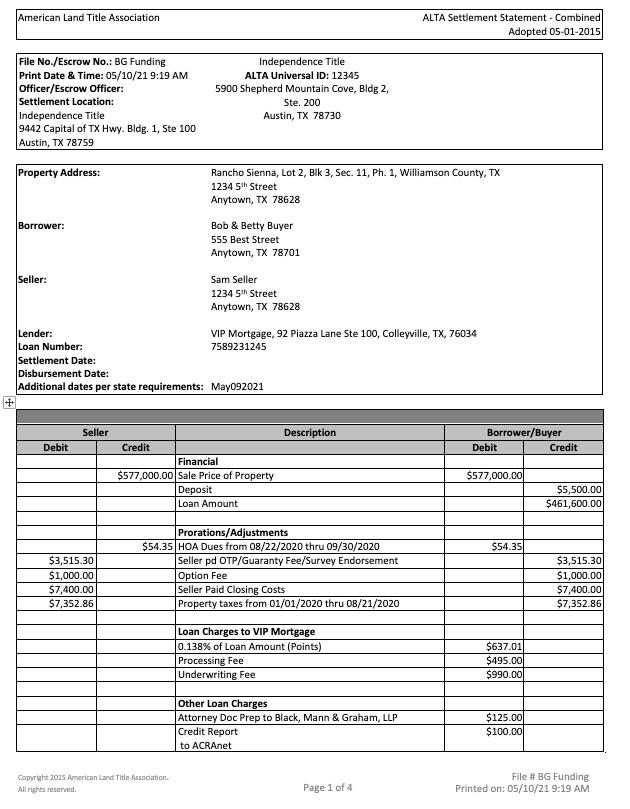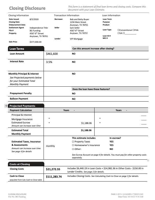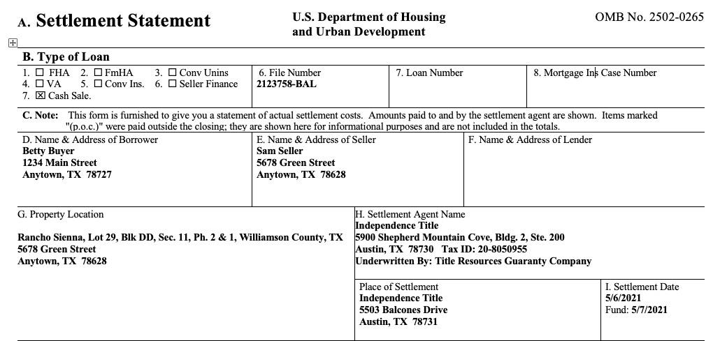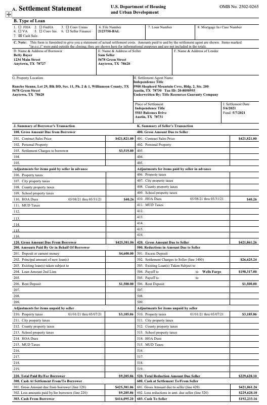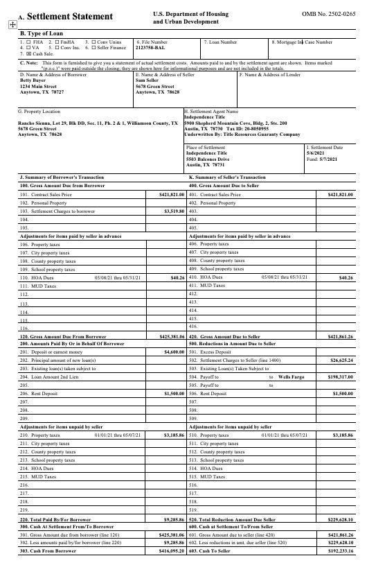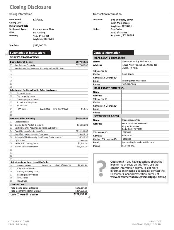 Buyer’s Closing Disclosure or CD Seller’s Closing Disclosure or CD