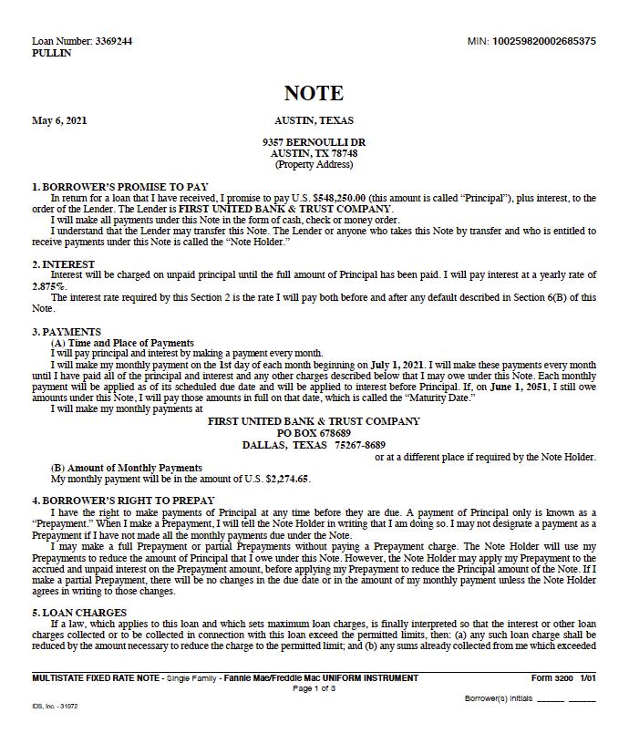 • Contains loan terms
