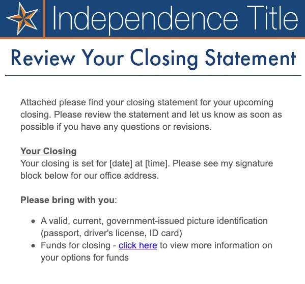 • They will often call to setup the closing day/time with you.