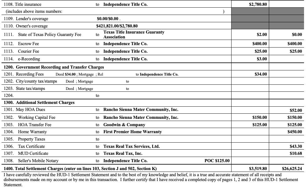 SELLER PROCEEDS INSTRUCTIONS TEXAS DISCLOSURE