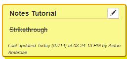 If you want to add a strikethrough on any lines in the sticky note, you can add <del> both before and after the words you want to strike through.