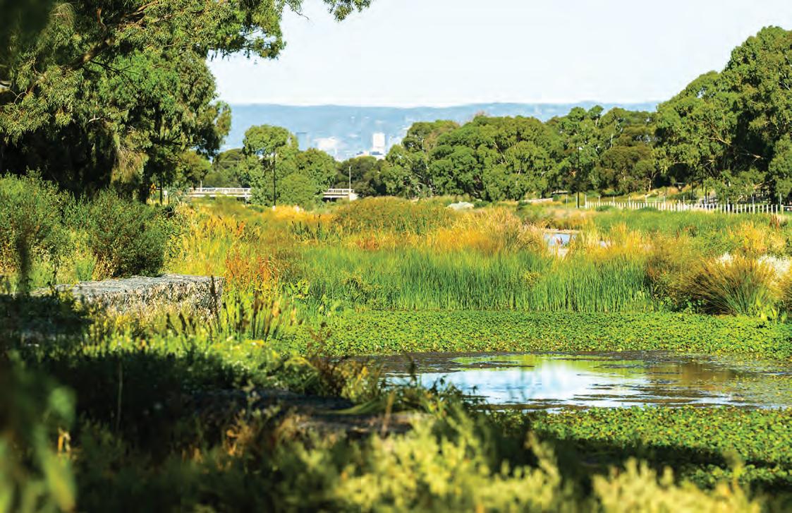on tHe CoVeR TCL with Green Adelaide, City of Charles Sturt, and City of West Torrens Breakout Creek /Purruna Pari Stage 3 successfully demonstrates the ecological, visual and recreational benefits of a well-functioning Blue/Green Infrastructure. The project achieves a climate-positive impact within 11 years of construction, aligning with the Australian Institute of Landscape Architects’ 2040 target.