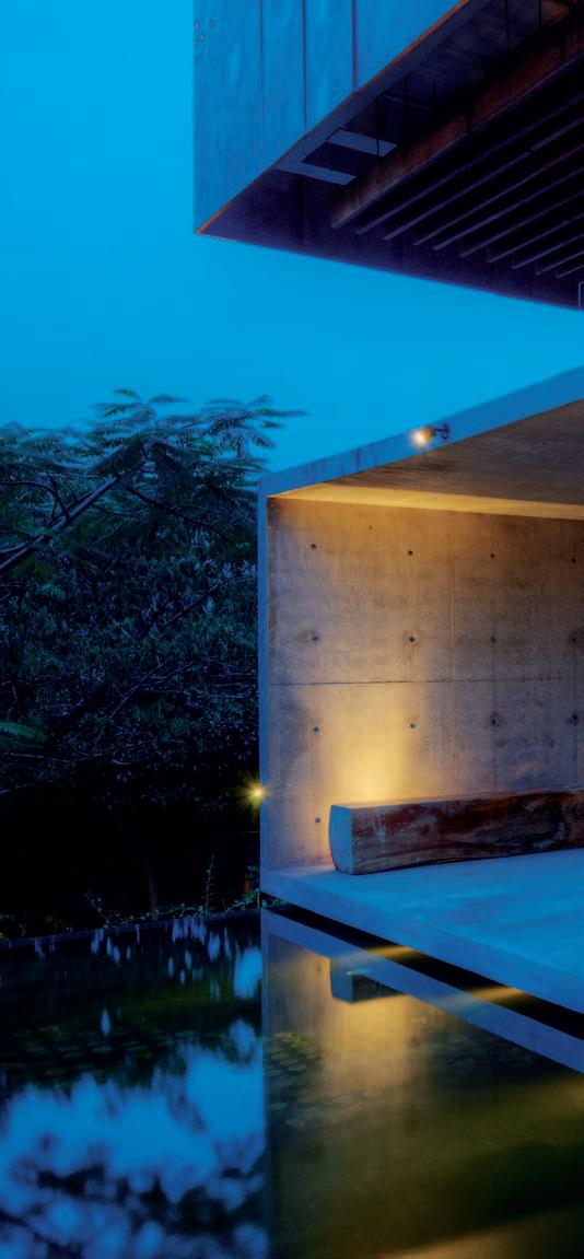 Introversion has a negative connotation in a culture where being social and outgoing are prized above all else. But what is withdrawal to some is energising for those who thrive on selfreflection and contemplation; life is found within. This fortitude and strength is visually given expression by a one hundredyear old Frangipani tree literally found within the house, centred in a large grassed courtyard surrounded with water. The tree was given a new lease of