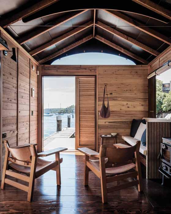 Deciding that the new version should be contained within the original building envelope, the owners were drawn to the idea of something bijoux but basic. Avid campers for many years of their lives when they travelled around outback Australia, the owners were keen to have a more direct connection to the harbour. “The appeal of the boathouse is its separation from the main house. It’s like an escape from modern living,” say the owners. “We have purposefully kept the boathouse extremely simple and a little bit oldfashioned. It is a bit of a throwback to the way we once lived.”
