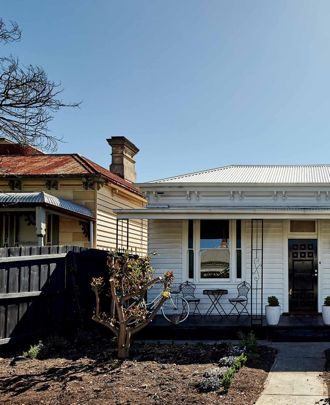 bedroom dormitory, with Ken and Jade’s room occupying the north-east corner and Mia’s the north-west. Protecting the cottage (intricate plaster ceilings included) was indisputable for all parties for reasons pertaining to sustainable practice and a shared appreciation for vernacular housing and character streetscape.