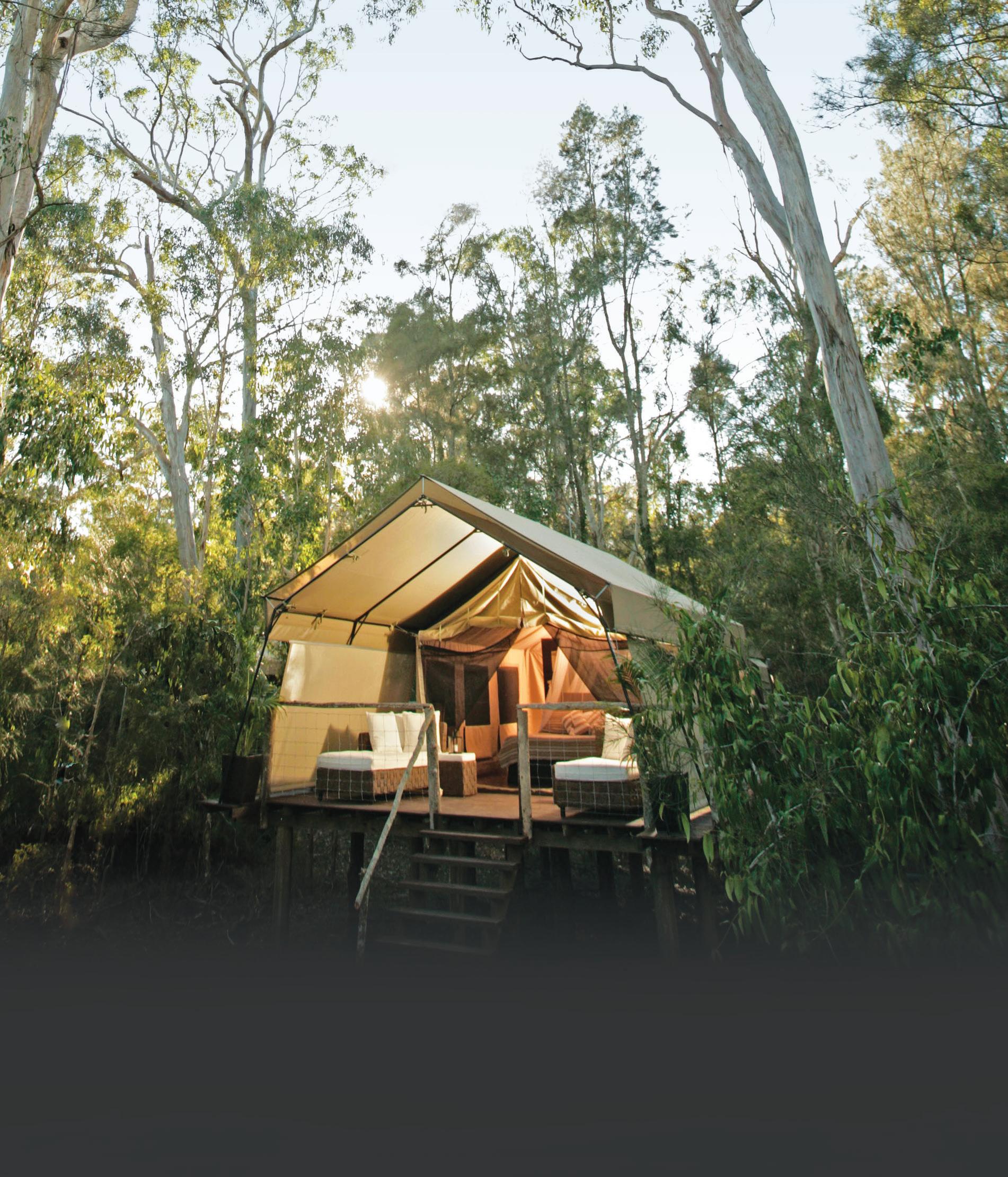 Set among rolling farmland and grazing kangaroos, this stand-alone eco tent is Mudgee’s first ever glamping retreat. The self-contained one-bedroom tent occupies 18 square metres and features a king size bed, spacious indoor bathroom with freestanding bathtub, sliding glass doors and large screen windows for unspoiled views. Guests are provided a modest breakfast pack and encouraged to explore the surrounding wineries and foodie haunts for produce to be enjoyed on the verandah. Rates start from A$250 per night mid-week.