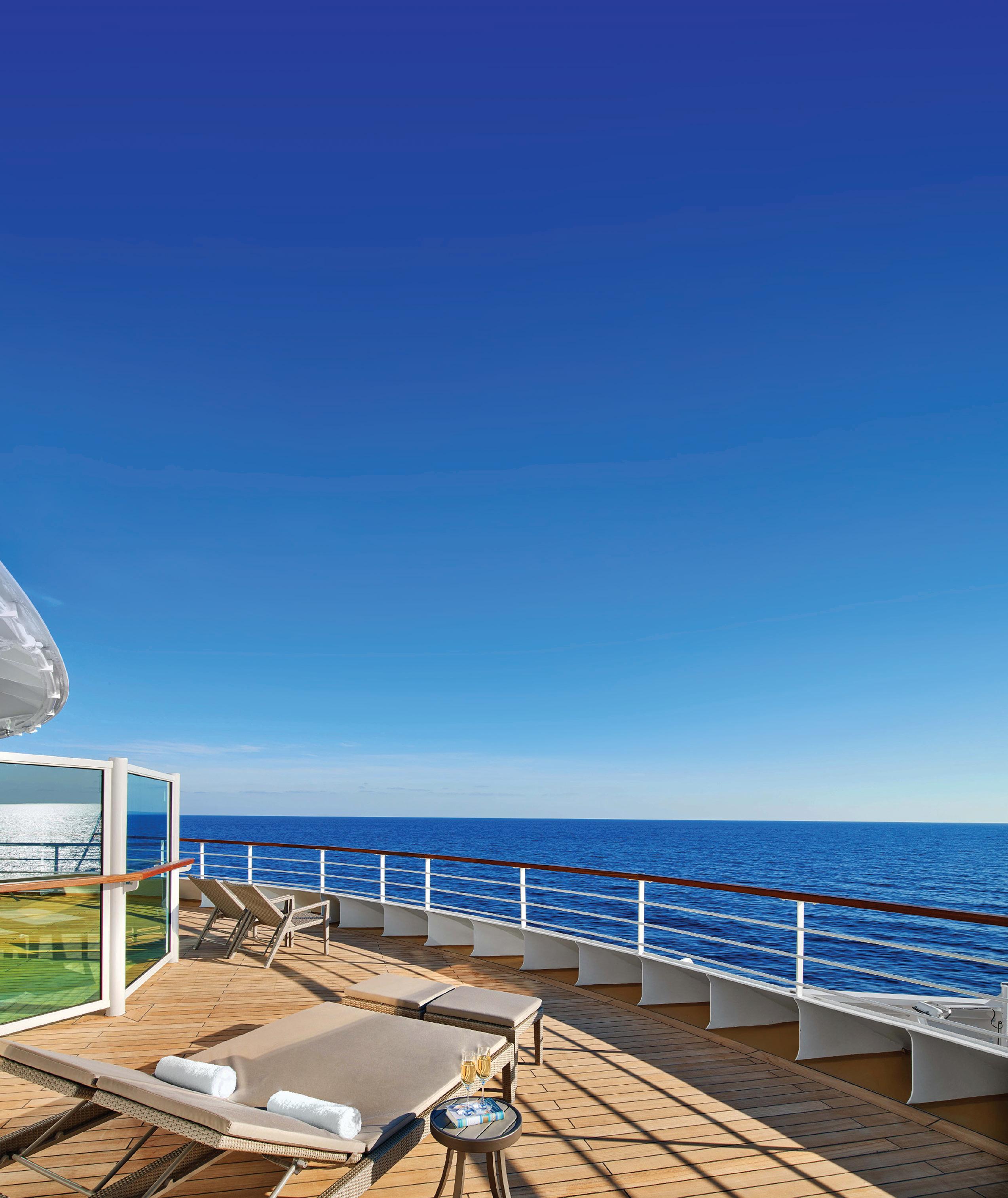 Brand new ultra-luxury ship s Spacious all veranda ocean-view suites s Eight fine dining restaurants s Butler service s In-suite bar