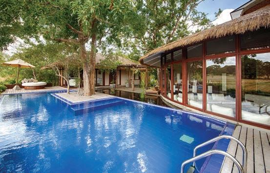 e haveli (or ‘townhouse’, which also features an attached courtyard-style building) includes the gym and infinity pool that peers over orchards and organic gardens. e gardens are abundant, and chef Rajat Chandna wanders through with me, plucking lemongrass, pomegranates and a long gourd called lauki while sharing recipes for delicious-sounding marsala eggplant. e vegetables are the stars of the hotel’s wellness menu, devised in consul-