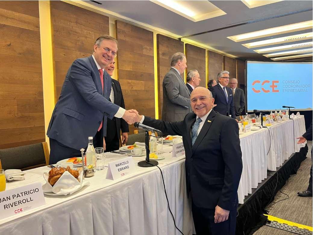 Ebrard Casaubón estuvo acompañado de los Subsecretarios de Industria y Comercio, Vidal Llerenas y de Comercio Exterior, Luis Rosendo Gutiérrez, quienes reiteraron el interés en la formación de un gobierno amigable con las empresas, para impulsar el desarrollo económico y bienestar de los mexicanos.