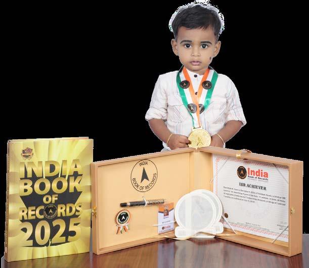 R. Shasthika (born on October 1, 2023) of Karur, Tamil Nadu, is titled as ‘IBR Achiever’ for identifying and naming 10 fruits, 4 parts of the body and 4 actions; recalling the names of 5 Indian states with capitals, 5 national symbols, 5 rivers and months in a year; counting from 1 to 10, at the age of 1 year and 11 months, as confirmed on September 10, 2025.