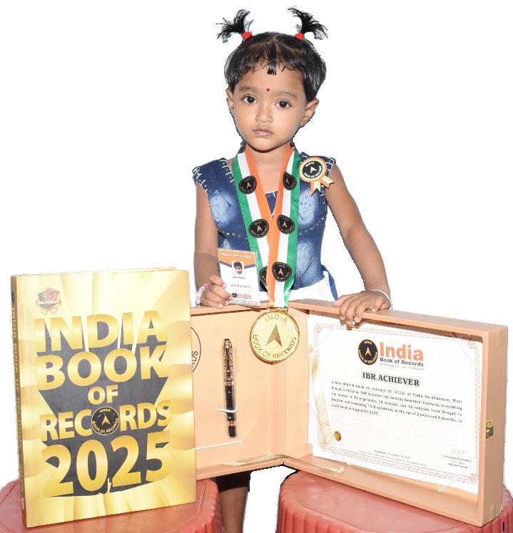 Ankita Mallick (born on January 31, 2023) of Purba Bardhhaman, West Bengal, is titled as ‘IBR Achiever’ for reciting Saraswati Vandana; translating the names of 30 vegetables, 34 animals and 18 vehicles from Bengali to English; and answering 7 G.K questions, at the age of 2 years and 6 months, as confirmed on August 30, 2025.