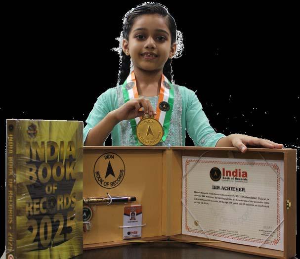 Khanak Sangath Joshi (born on September 4, 2017) of Ahmedabad, Gujarat, is titled as ‘IBR Achiever’ for reciting all the 118 elements of the periodic table in 1 minute and 39 seconds, at the age of 7 years and 10 months, as confirmed on