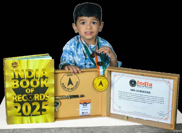 Namami Saurabh Rathi (born on November 24, 2022) of Wardha, Maharashtra, is titled as ‘IBR Achiever’ for identifying 20 parts of the body; recalling months in a year, 6 English antonyms and letters of the English alphabet with 26 associated words; reciting 7 Sanskrit shlokas, 14 English and 3 Hindi nursery rhymes, at the age of 2 years and 9 months, as confirmed on August 30, 2025.