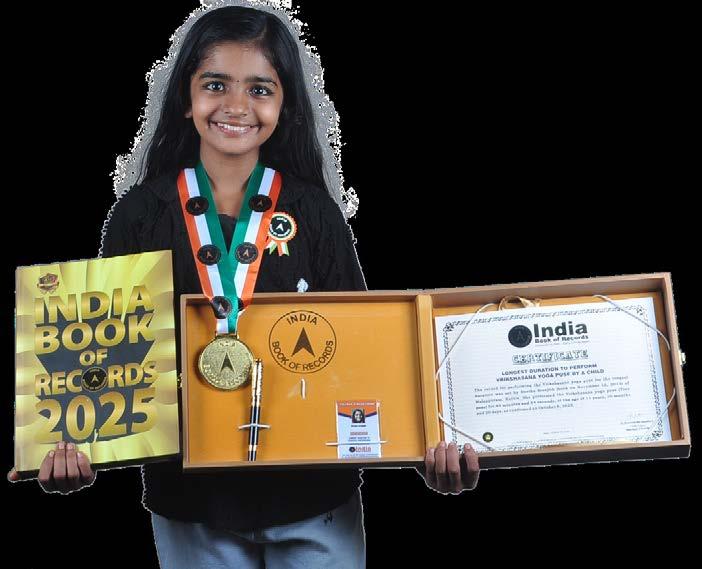 Aarvi Gowda A. R. (born on March 5, 2020) of Chikkamagaluru, Karnataka, is titled as ‘IBR Achiever’ for reciting 15 shlokas, 5 Bhagavad Gita shlokas, 12 zodiac signs in Kannada, 27 Nakshatras, 60 Samvatsaras, Lord Ganesha Pancharatnam stotra, Lord Rama Vamshavriksha (family tree of Lord Rama); demonstrating 52 hand mudras (single and double hand gestures) of Bharatanatyam dance, at the age of 5 years and 6 months, as confirmed on September 26, 2025.