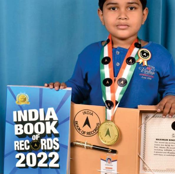 Om Prakash Sahu (born on July 19, 2020) of Khordha, Odisha, is titled as ‘IBR Achiever’ for recalling the names of 15 flowers, 13 domestic animals, 20 fruits, 18 wild animals, 20 vegetables, 15 birds, 50 English antonyms and 30 districts of Odisha; reciting 13 English nursery rhymes, 10 mantras, 26 letters of English alphabet with associated words and the Hanuman Chalisa; answering 150 G.K questions; counting from 1 to 100 in English and Odia; and singing the National Anthem, at the age of 5 years and 1 month, as confirmed on September 1, 2025.