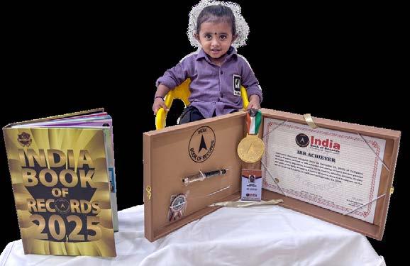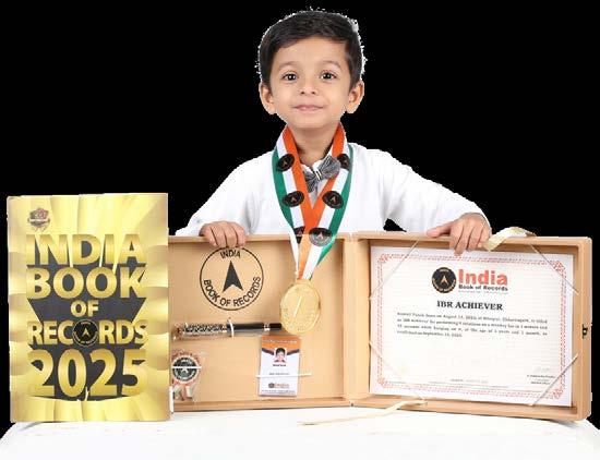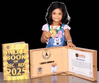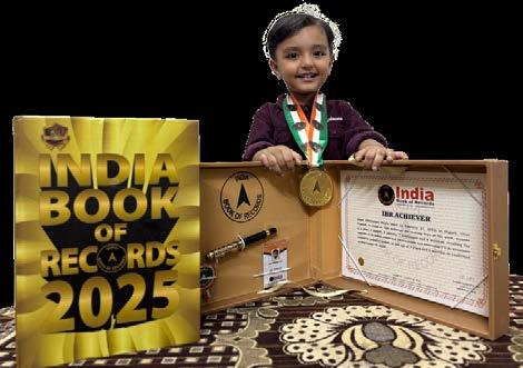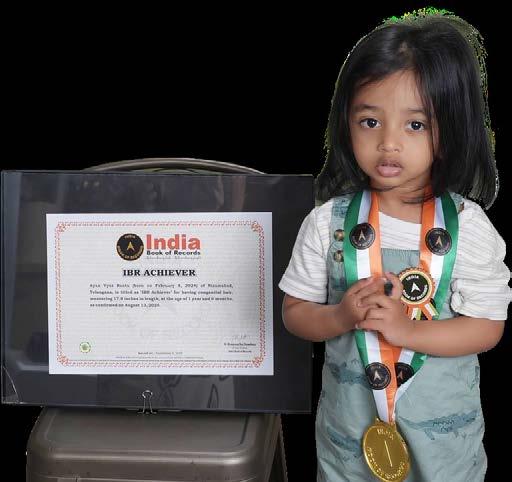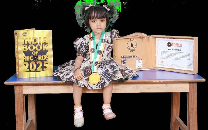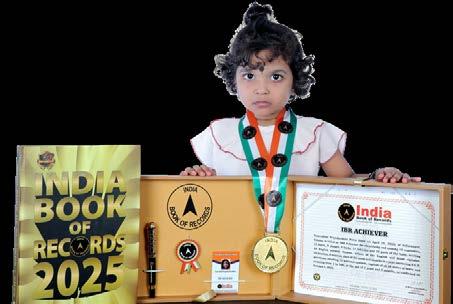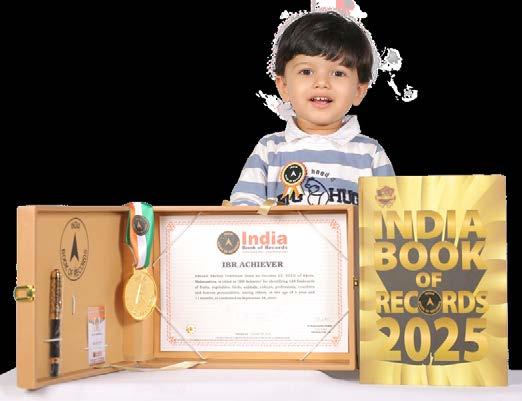 Aaradhya Sah (born on October 17, 2023) of Sundargarh, Odisha, is titled as ‘IBR Achiever’ for identifying and naming 12 parts of the body, 11 colours and 61 miscellaneous items; recalling 140 miscellaneous words; counting from 1 to 20; and reciting all the letters of English and Hindi alphabet with associated words, at the age of 1 year and 11 months, as confirmed on September 19, 2025.