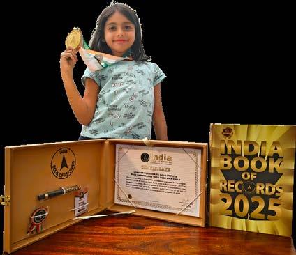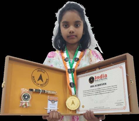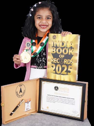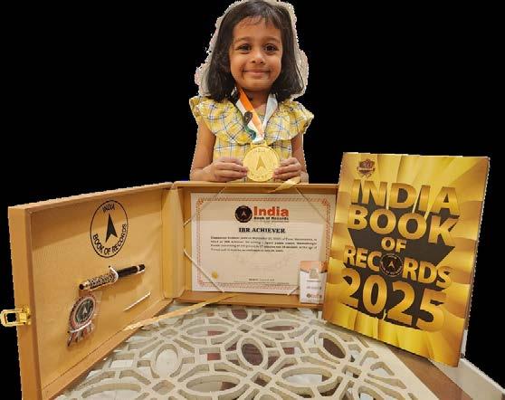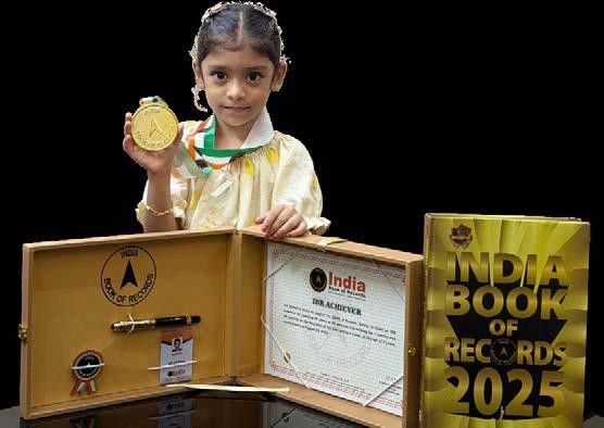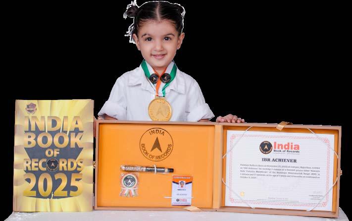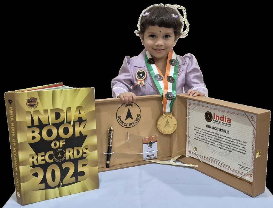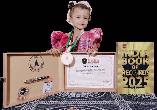 Samruddhi Priyadarshini Patra (born on April 10, 2022) of Subarnapur, Odisha, is titled as ‘IBR Achiever’ for identifying and naming 15 vegetables, 15 fruits, 9 shapes, 9 birds, 11 vehicles and 10 parts of the body; reciting 10 English nursery rhymes, letters of the English and Hindi alphabet, 10 mantras, 6 seasons, days of the week and months in a year; answering 8 G.K. questions; recalling 12 national symbols, capitals of all 28 states of India; and counting from 1 to 100, at the age of 3 years and 5 months, as confirmed on October 1, 2025.