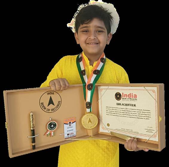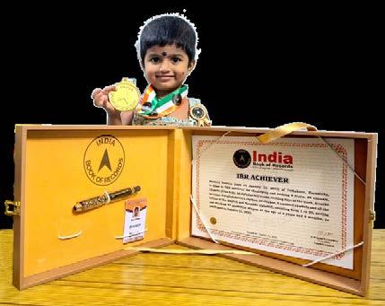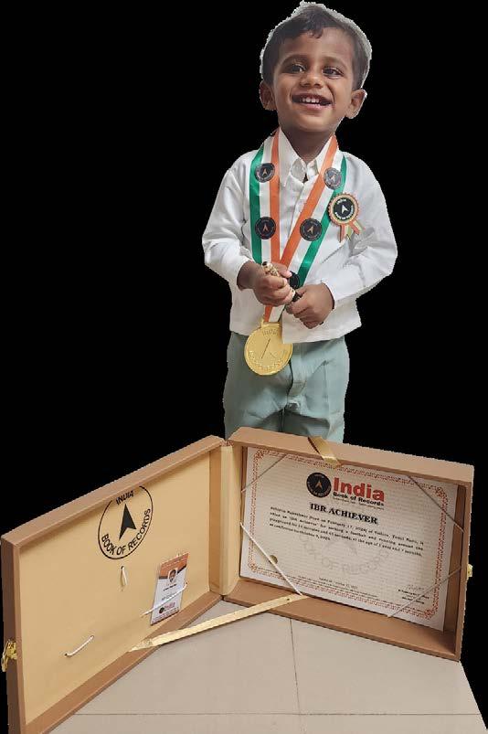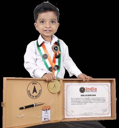 Darsh K. Vaishak (born on August 9, 2023) of Kasaragod, Kerala, is titled as ‘IBR Achiever’for identifying and recalling the names of 27 fruits, 12 colours, 11 animals, 14 vegetables and 15 vehicles; reciting 26 letters of the English alphabet, at the age of 2 years and 1 month, as confirmed on September