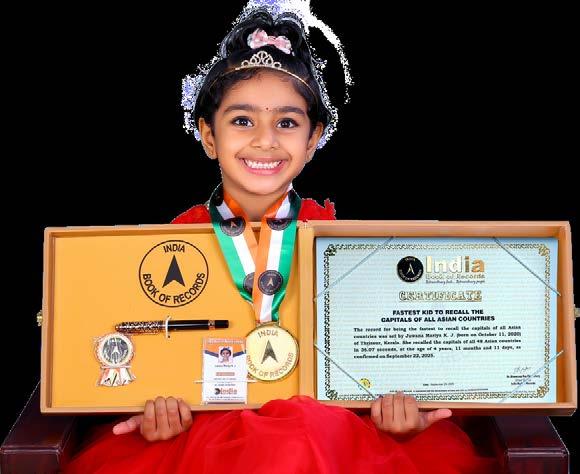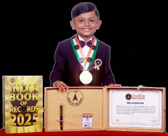 Ashvik Rajeev (born on June 3, 2020) of Palakkad, Kerala, is titled as ‘IBR Achiever’ for naming 7 continents, 14 districts of Kerala, 28 states and 8 union territories of India; recalling the capitals of 28 Indian states and 195 (UN recognised) countries; identifying the flags and recalling the names of 60 countries; answering 92 G.K. questions, at the age of 5 years and 3 months, as confirmed on September 6, 2025.