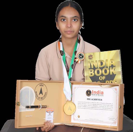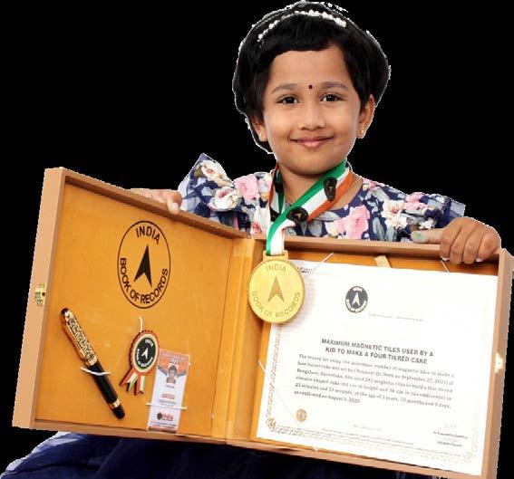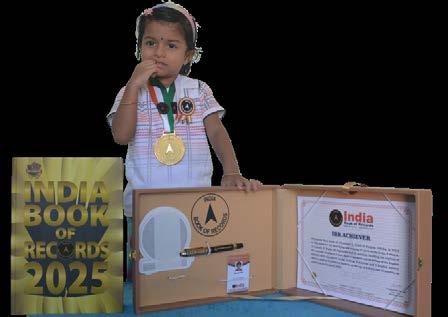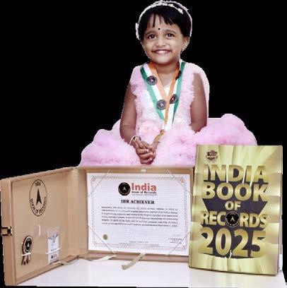 Manasvi Praveen (born on January 10, 2023) of Tumakuru, Karnataka, is titled as ‘IBR Achiever’ for identifying and naming 8 fruits, 26 animals, 15 parts of the body, 26 alphabetical words; reciting days of the week, months in a year, 5 English nursery rhymes, 10 shlokas, 5 national symbols and all the letters of the English and Kannada alphabet; counting from 1 to 20; sorting and stacking 25 geometric shapes, at the age of 2 years and 9 months, as confirmed on October 2025.
